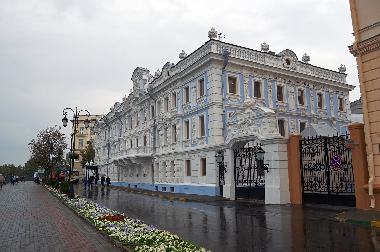 Что понравилось - реставраторы продолжают работу прямо при экскурсантах. Сейчас в двух комнатах особняка заканчивают позолоту лепнины.Интерьер с пухлыми ангелками, разношерстный по стилю отсылает куда-то к царскосельскому дворцу. Балльный зал с зеркалом хорош, кабинет владельца, холл с лестницей тоже для глаза приятны. Экскурсовод очень уважительно то и дело поминает владельца здания, Кажется Ивана Сергеевича, так, как будто он жив. Заинтригована дневником и фотографиями с отдыха в Крыму девушки конца 19 века. Это в экспозиции на третьем этаже, посвященной купечеству. Там же коллекция платков и мануфактуры Бугрова (если я ничего не путаю). Ну и конечно, старообрядческие лестовки. Кресла, ширма из дома Шереметевых тоже хороши.
